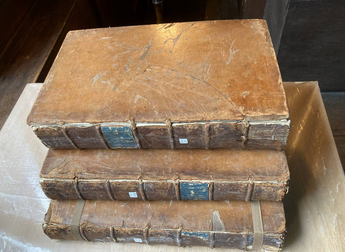 In addition, a leak sometime in the past had resulted in several books being very mouldy and stuck together, which were identified as we carried out the conservation, and they were sent to Harwell Restoration.