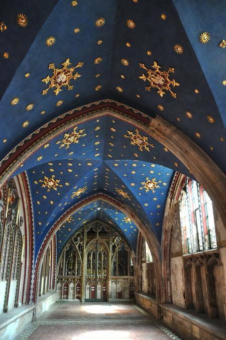 The most evident deterioration issue in the chapel is the severe de-lamination of the paint layers, in particular on the vault. Large areas of the vault, ribs and window traceries, especially on the south side of the chapel, had suffered a complete loss of paint and ground layers, leaving the plaster on the vault in these areas exposed and affected by de-cohesion (binder loss) and salt efflorescence.